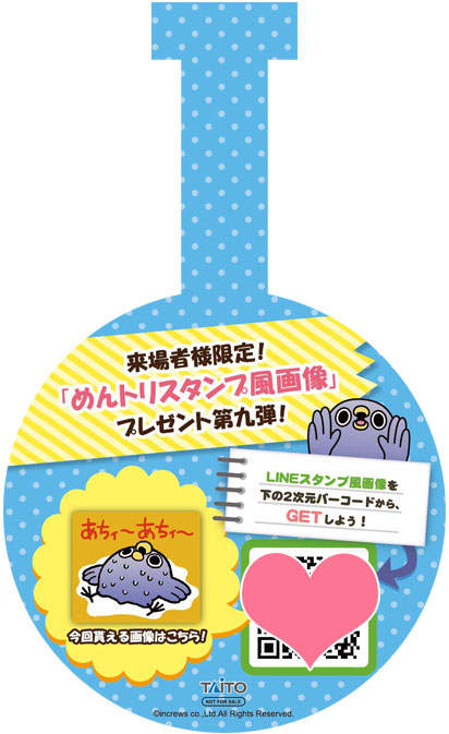 ここでしか貰えない来店者様限定のスタンプ風画像もアリ! プライズの獲得を目指してスタンプ風画像とセットでお持ち帰りください!