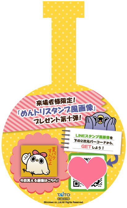 ここでしか貰えない来店者様限定のスタンプ風画像もアリ! プライズの獲得を目指してスタンプ風画像とセットでお持ち帰りください!